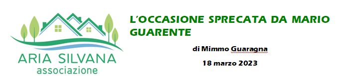Dopo due mesi che era stato eletto sindaco fu invitato all’assemblea dei residenti di Ariasilvana; si visse una serata in allegria dove si incontrarono la politica e la convivialità anche grazie al ricco buffet allestito senza oneri per l’amministrazione e per gli amministratori. In quella occasione l’Associazione Ariasilvana offrì una leale collaborazione; oltre tutto Guarente, insieme agli altri quattro aspiranti alla carica di sindaco, aveva sottoscritto la Carta delle Contrade, purtroppo da tutti cestinata con l’inchiostro della firma ancora fresco. Fu sottoposta all’attenzione dell’Amministrazione una idea progettuale che prevedeva lo sviluppo integrale della Vallata di Riofreddo valorizzando l’agricoltura sociale, le attività turistiche e di tempo libero, realizzando centri di aggregazione soprattutto intervenendo nella difesa idrogeologica la cui precarietà provoca continui cedimenti stradali, un modello esportabile e generalizzabile in tutte le zone rurali di Potenza. È vero che subito dopo è arrivata la pandemia, però non si giustifica la latitanza dell’amministrazione, perché insieme al covid sono arrivati i finanziamenti che nessuno si sarebbe sognato; tanto per cambiare al Comune, scoprendosi impreparati e privi di idee progettuali, si è balbettato annaspando su qualche copia e incolla e si è finiti col raccattare quanto di più strampalato e avariato passava sotto il naso.